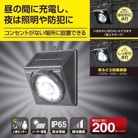 【センサーウォールライト ソーラー 200ルーメン LT-SSL20DW4の商品詳細】