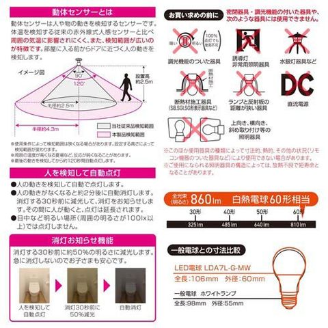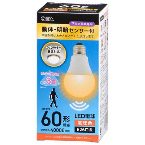 【LED電球 E26口金 60形相当 動体・明暗センサー付 電球色の商品詳細】