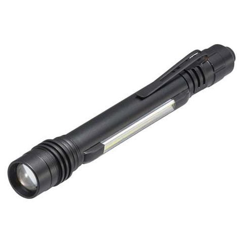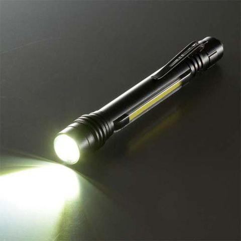 | ズームイン:遠くを強く照らす ズームアウト:近くを広く照らす ON/OFFスイッチを押すと以下のように切り替ります。 全押し:LED灯→消灯→COB灯→消灯 点灯中に半押し:LED灯→COB灯 電源:単4形乾電池2本(別売) 使用光源:白色LED 白色COB(交換不可) 光束:LED・・・約90ルーメン/COB・・・約160ルーメン ※簡易的に本体を積分球に入れ、新しい電池で実測した数値 連続点灯時間:LED・・・約5時間/COB・・・約4.5時間 ※未使用・新品アルカリ乾電池使用時 ※電池の性能や使用状況により異なります 照射距離:約35m(LEDモード集光時) ※理論値として満月時の月の明るさ(0.25 Lux)で照らすことができる照射距離 質量:約45g(乾電池別) 外形寸法:(約)最大径20×長さ145mm |