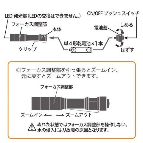 ●スライドフォーカス機能付き電池式LEDフラッシュライト