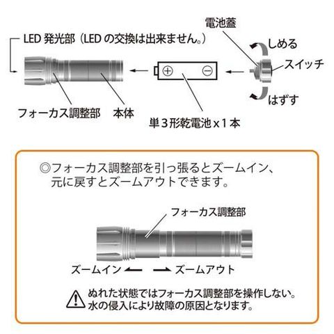 ●スライドフォーカス機能付き電池式LEDフラッシュライト