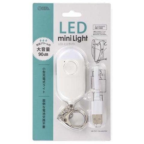 | ・電源:充電式(充電池内蔵) ・内蔵充電池:リチウムイオン電池3.7V130mAh(電池交換不可) ・点灯時間:2.5時間(満充電時) ・点滅時間:15時間(満充電時) ・音量:90dB ・連続吹鳴時間:1.5時間(満充電時) ・充電時間:約30分 ・充電池寿命:充放電約500回 ・光源:白色系LED2個(交換不可) ・光束:約15lm(ルーメン) ・外形寸法:(約)高さ131*幅36*奥行17mm(フック付チェーン含む) ・質量:約31g ・本体材質:ABS樹脂 ・付属品:充電専用USBケーブル (ご注意) ※お子様が使用される場合は、保護者の方がお子様に使用方法や警告・注意事項をご指導ください。 ※本製品は大音量で相手を威嚇するためのもので、犯罪を防止するものではありません。 ※万一、盗難・事故などトラブルによる被害について、弊社は責任を負いかねます。あらかじめ、ご了承ください。 |