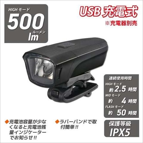充電式LEDサイクルライト 500ルーメン調光機能SL-BR500-K (1個)
