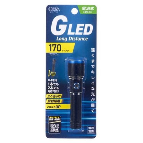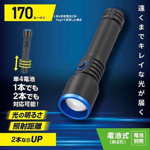 ●全光束170ルーメン(単4形乾電池2本使用/High時)