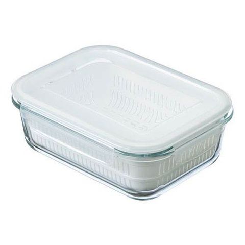 | 本体サイズ(約):幅207×奥行154×高さ70mm ザルサイズ(約):幅172×奥行122×高さ47mm 容量(約):1040ml 商品重量(約):730g 素材:本体:耐熱ガラス(耐熱温度差120度)、ザル・フタ:ポリプロピレン(耐熱温度120度)、パッキン:シリコーン樹脂(耐熱温度230度) 生産国:中国 |