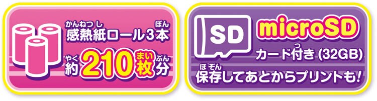 | ・本体×1 ・ストラップ×1 ・ケーブル×1 ・感熱紙ロール×3 ・専用microSDカード(32GB)×1 ・取扱説明書×1 |