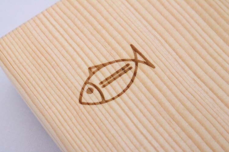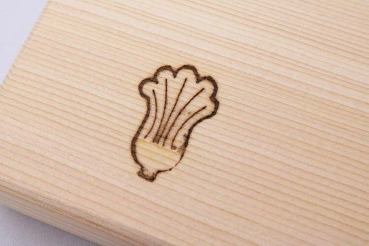●使い分けに便利な焼印のマーク、両面に魚と野菜の焼印を加工。使い分けに便利です