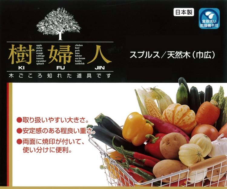 ●天然木・スプルスを使用、日本の檜と柳の中間の特性を持ち、ソリが少なく、魚・野菜料理のどちらにも便利なまな板