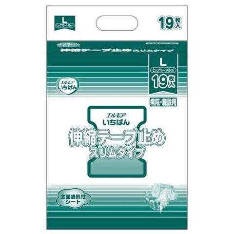 エルモアいちばん 病院・施設用 伸縮テープ止め スリムタイプ L (19枚入)