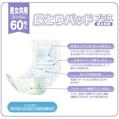 エルモアいちばん 病院・施設用 尿とりパッドプラス 男女共用 (60枚入)