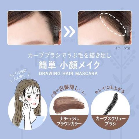 ・前髪の三角すき間など、生え際の気になる部分にブラシをなでつけるようにして、髪・地肌に塗布し、うぶ毛を描き足してください。