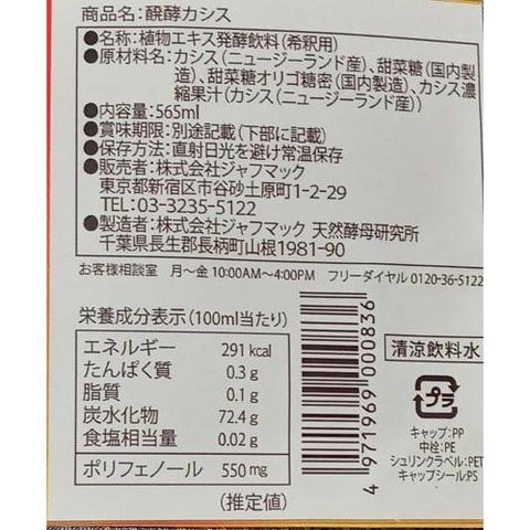 | カシス(ニュージーランド産)、甜菜糖(国内製造)、甜菜糖オリゴ糖蜜(国内製造)、カシス濃縮果汁(カシス(ニュージーランド産)) |