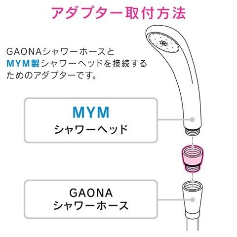 ●GAONAシャワーホースに、MYM製シャワーヘッドを取付けるためのアダプターで、工具を使用することなく、手締めにて簡単に取付けできます。