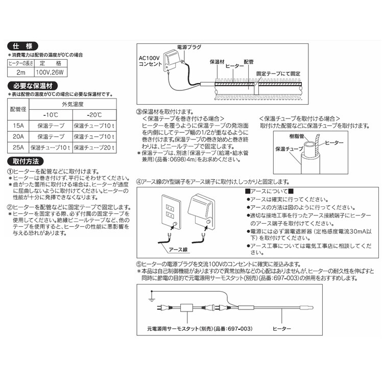 ●市販の保温材か、0698保温テープを使用してください。