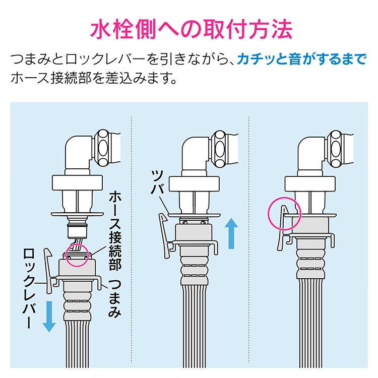 ●洗濯機用ニップルなどにワンタッチで接続ができます。