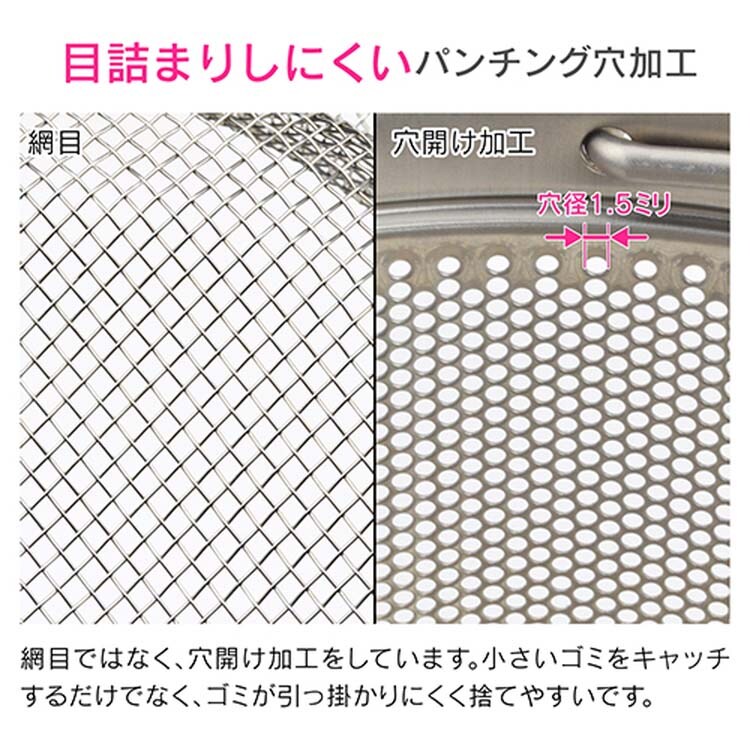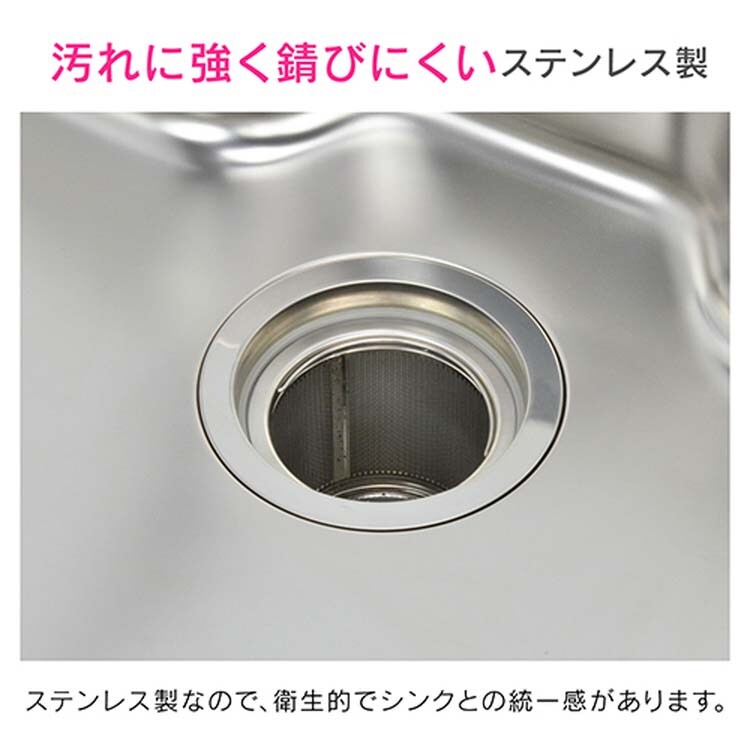 ●キッチンのシンク用のゴミカゴ。●ほとんどの市販の流し台に使用できます。●汚れに強く錆びにくいオールステンレス製です。●目詰まりしにくいパンチング穴加工なのでゴミが引っ掛かりにくく捨てやすいです。●掃除の際も洗いやすいため、清潔にお使いいただけます。●マンションやアパートなどの賃貸住宅の原状回復に最適です。
