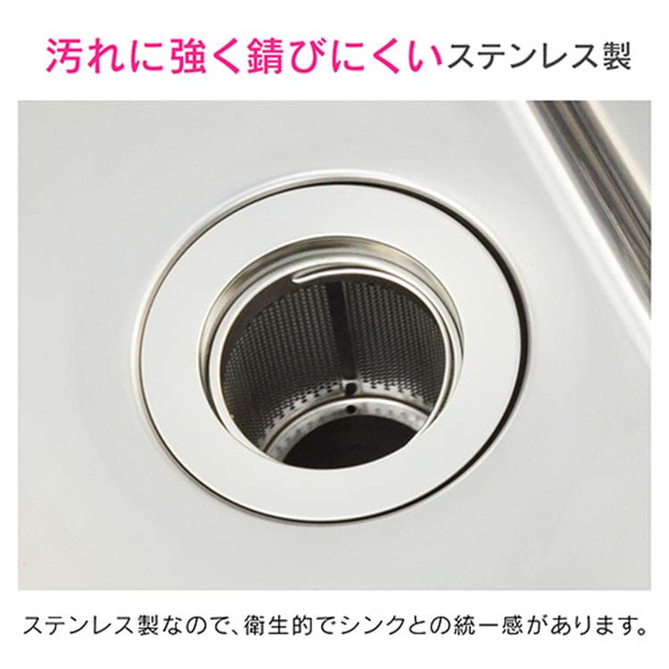 ●キッチンのシンク用の浅型ゴミカゴ。●ゴミカゴと防臭ワンが一体になっています。●汚れに強く錆びにくいステンレス製です。●破損や汚れによる交換に最適です。●穴の目が細かいので、小さいゴミまでキャッチできます。●マンションやアパートなどの賃貸住宅の原状回復に最適です。