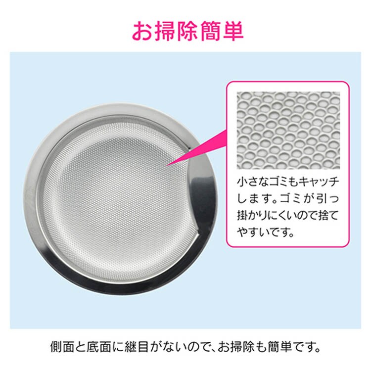 ●キッチンのシンク用の排水プレートと浅型ゴミカゴのセット。●取っ手付きのゴミカゴで、ゴミに触れず衛生的に取外せ、汚れに強く錆びにくいステンレス製で、お手入れが簡単で洗いやすいです。●シンクと同じ色で、外観を綺麗に見せます。●側面と底面に継目がないので、掃除が簡単で、蓋の穴からゴミをバスケットに素早く収納できます。●こまめなゴミ捨てで清潔感を保ちたい方にオススメな浅型のゴミカゴです。●マンションやアパートなどの賃貸住宅での交換にオススメです。