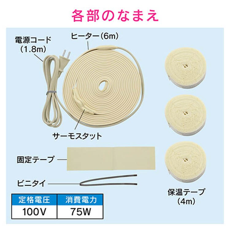 | ●付属品:ビニタイ・固定テープ・保温テープ(4m×3個)。 |
