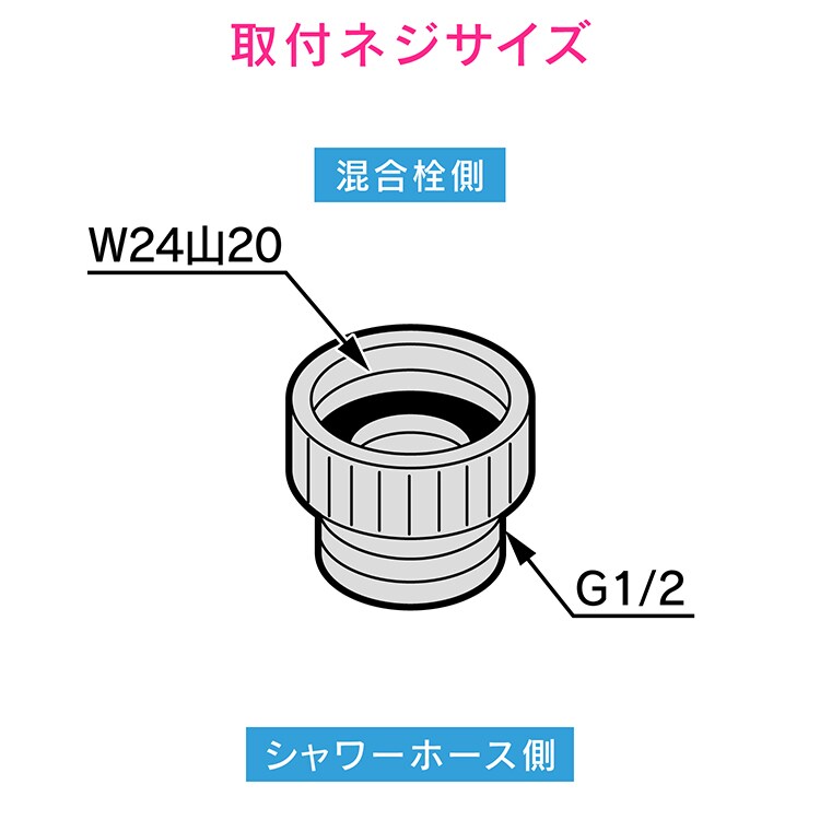 | 取付ネジ・・・混合栓側メスネジ(W24山20)*シャワーホース側オスネジ(G1/2) |