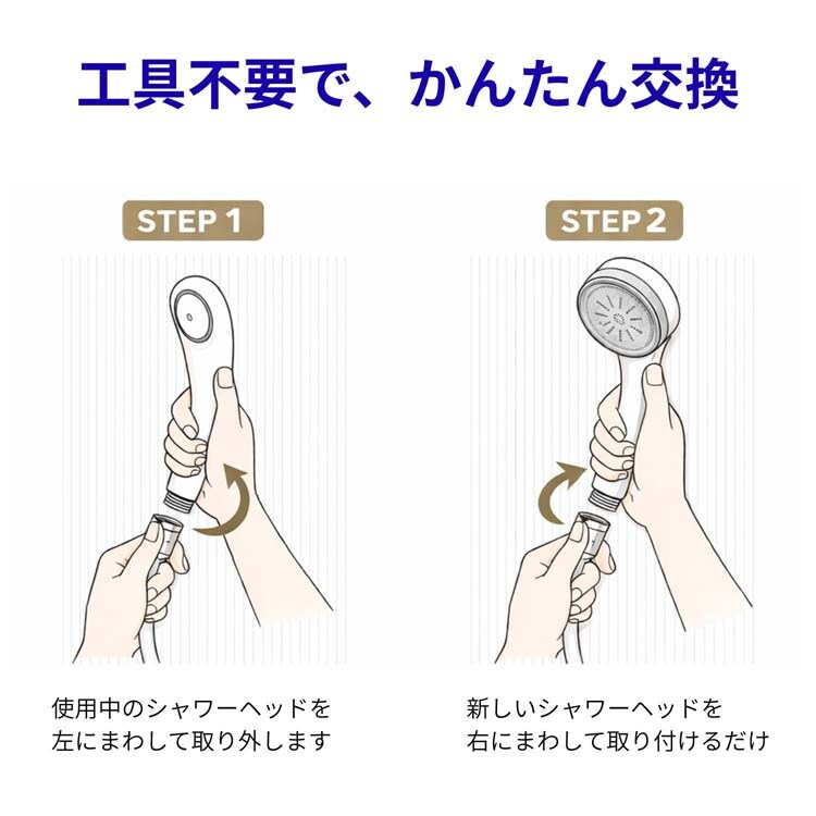 ●カートリッジの浄水機能により水道水中の残留塩素を分解し、髪や肌に優しい水に生まれ変わります。