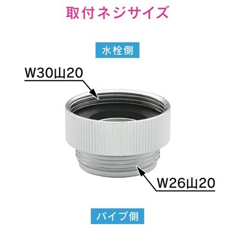 | 取付ネジ:蛇口側メスネジ(W30山20)*パイプ側オスネジ(W26山20) |