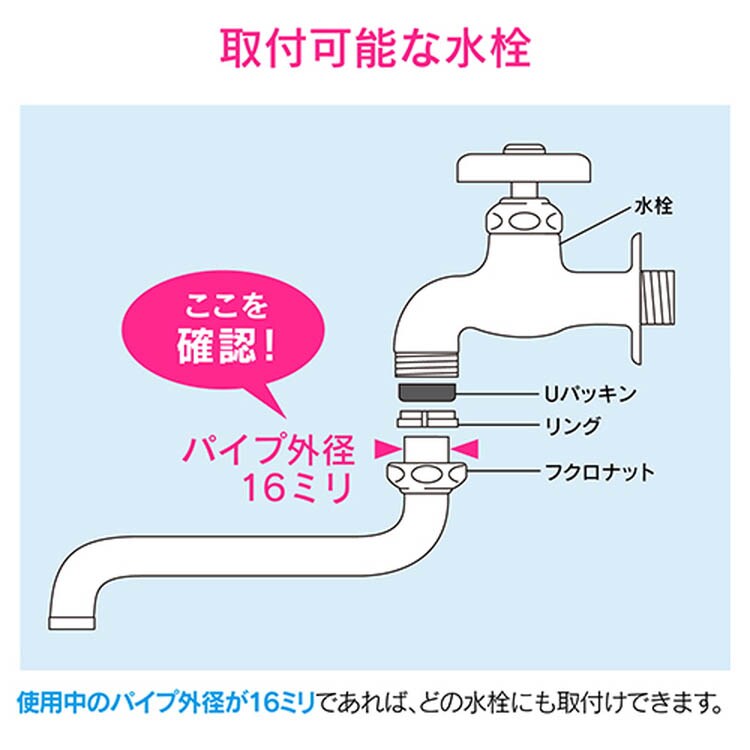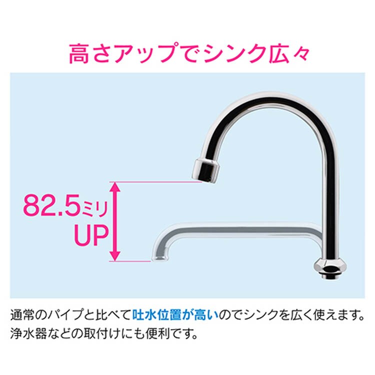 ●流し台を広く使うことができる蛇口用交換パイプ。●通常のパイプと比べて吐水位置が高いのでシンクを広く使えます。●泡沫金具が付いているので、節水器具未使用の場合と比べて約30%の節水効果(同メーカー比)があり、毎日の生活で節水を意識せずに節約できます。●泡沫金具を取外すことで、W22山20ネジの浄水器やキッチンシャワーを取付けできます。●浄水器やキッチンシャワーなどの取付けにも最適です。●使用中のパイプ外径が16ミリであればどんな蛇口にも取付けできます。