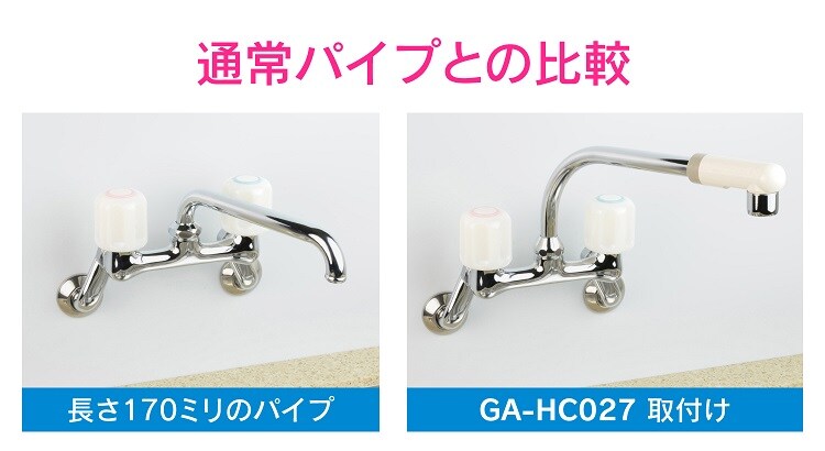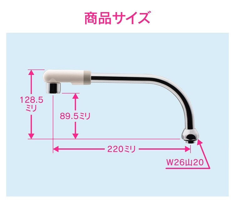 ●流し台を広く使うことができる、長さ220ミリの蛇口用交換パイプ。