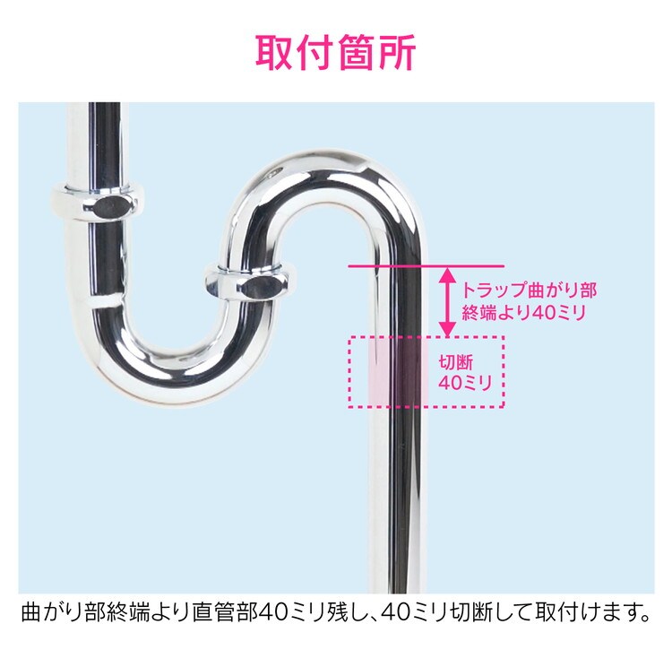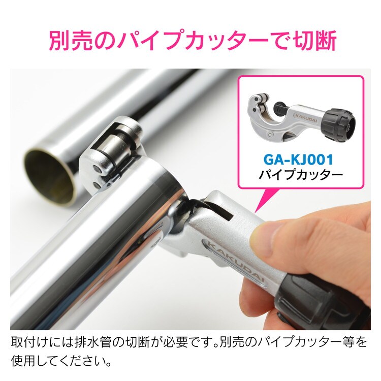 ・取り付けには排水管の切断が必要です。別売のパイプカッター等を使用して下さい。