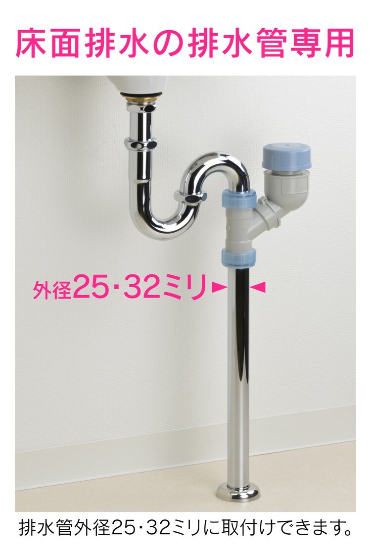 ●排水管外径25・32ミリに取付けできます。