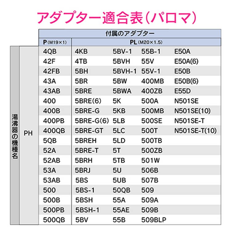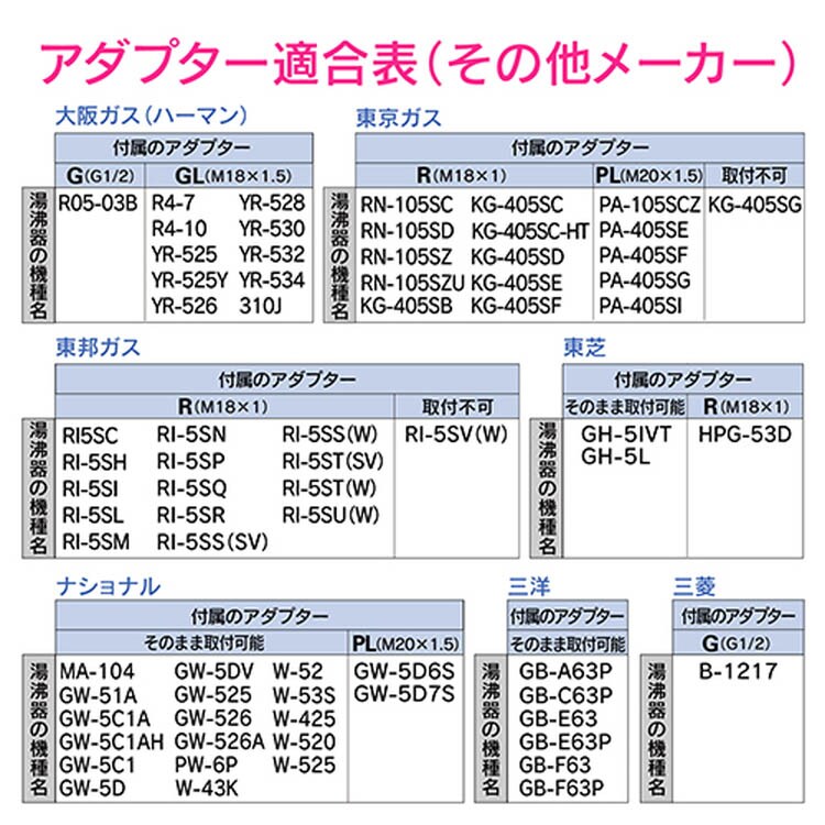 ・適合する湯沸器の機種をご確認の上、ご購入ください。