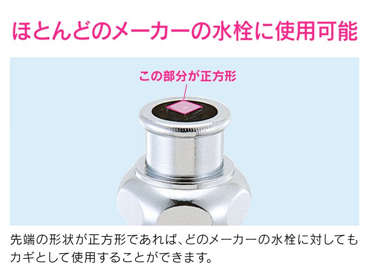 ●共用上部の先端が正方形であれば、どのメーカーの蛇口にも使用できます。