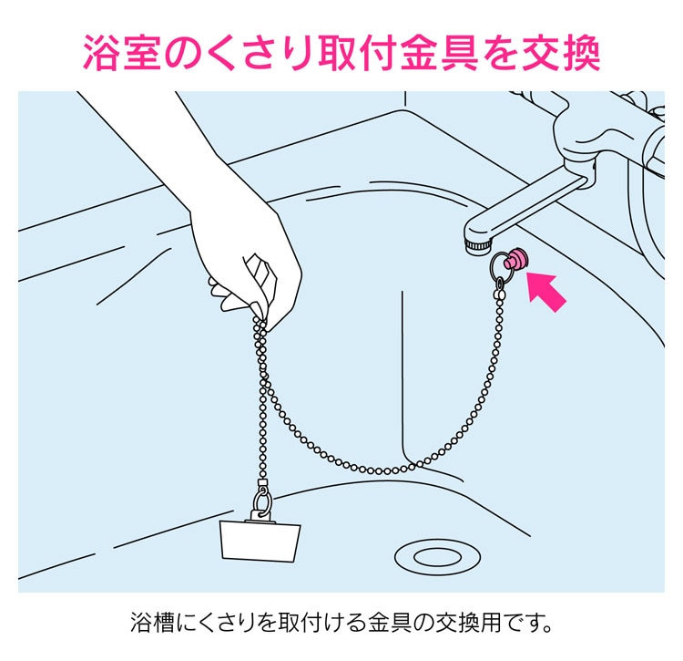 ●お風呂のゴム栓くさりをつなぐ金具です。