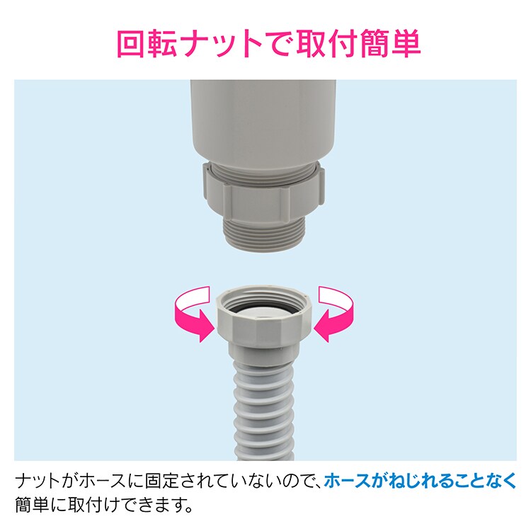 ●ナットは回転式で、ホースがねじれず簡単に取付けできます。