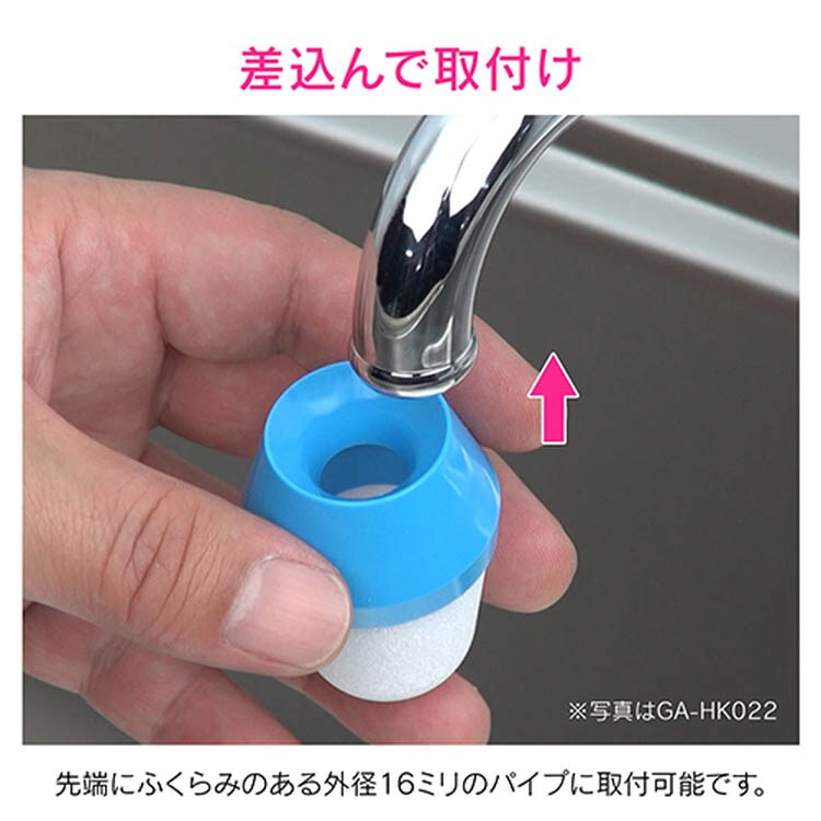 ●水道水ろ過用フィルター。●先端にふくらみのある外径16ミリ~19ミリのパイプに取付できます。●水ハネを防ぎ、水の汚れを取除きます。