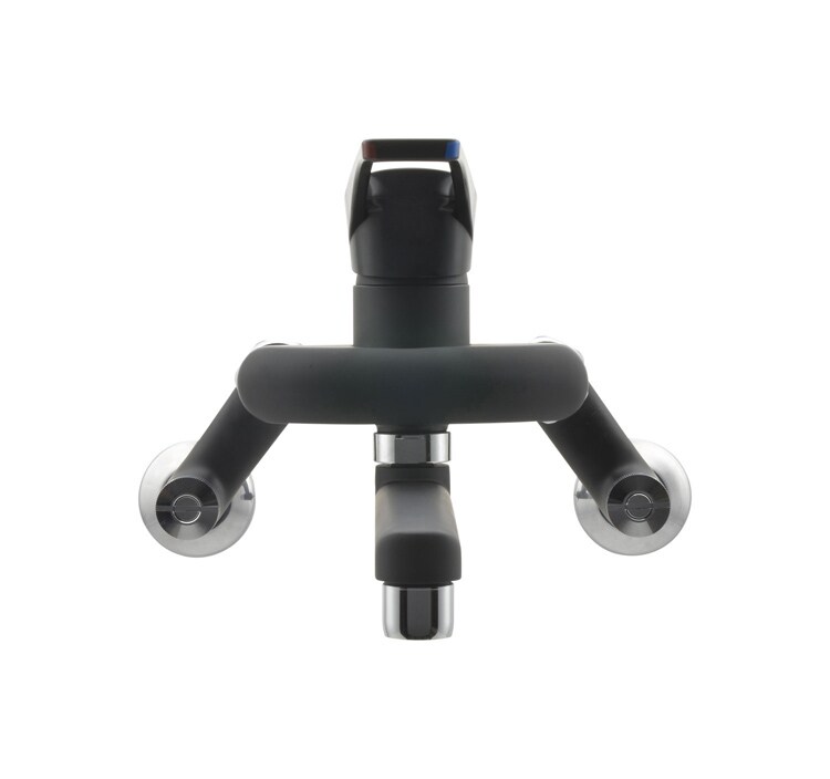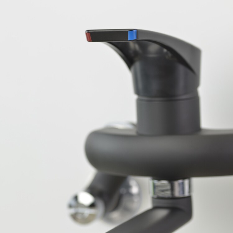●ツヤのない落ち着いたブラックのボディに銀色が映える高級感のあるキッチン用シングルレバー混合栓です。