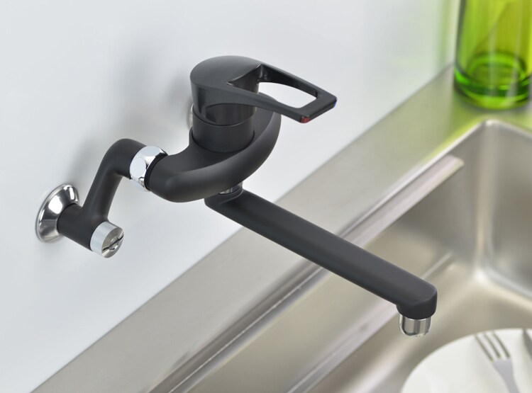 ●壁付のキッチン用シングルレバー混合栓。