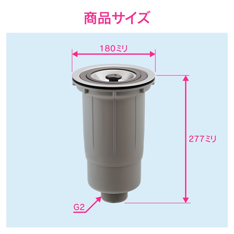 | ・使用温度:1~60度 ・取付穴径:158mm(絞り段外径181mm) ・取付はさみ込み厚:最大1.5mm ・対応排水口径:180mm ・材質:ポリプロピレン、ステンレス |