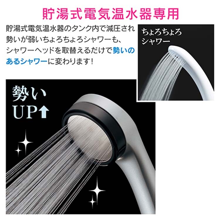 ●貯湯式電気温水器専用の低水圧用シャワーヘッド。●貯湯式電気温水器のタンク内で減圧されたお湯でも、シャワーに勢いをプラスすることができる超低水圧タイプです。●直径0.3ミリの金属噴板の穴から飛び出す微細シャワーは、今までにない心地よい肌あたりが期待できるシャワーです。●従来型シャワーヘッドと比べて約50%の節水効果(同メーカー比)、毎日の生活で節水を意識せずに節約できます。●安心な日本製です。●アダプター付きでほとんどのメーカーのホースに取付可能です。