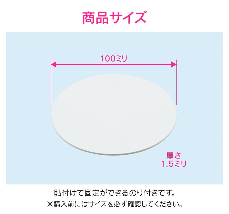 | ・サイズ:直径100mm*厚さ1.5mm ・色:ホワイト ・穴無し ・入数:10枚 ・材質:ポリ塩化ビニル樹脂 |