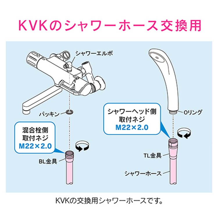 取付ネジサイズ:M22×2(混合栓側)・M22×2(シャワーヘッド側)