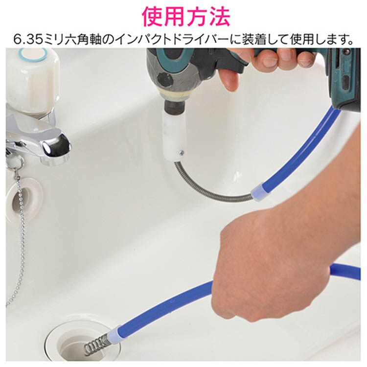 ●インパクトドライバーに装着して排水管のつまりを簡単に掃除できるパイプクリーナー。