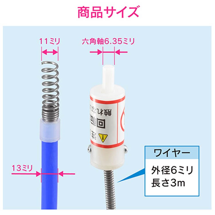 | ワイヤー:外径6mm×長さ3m 六角軸:6.35mm (材質)鋼・ポリプロピレン・ポリアセタール |