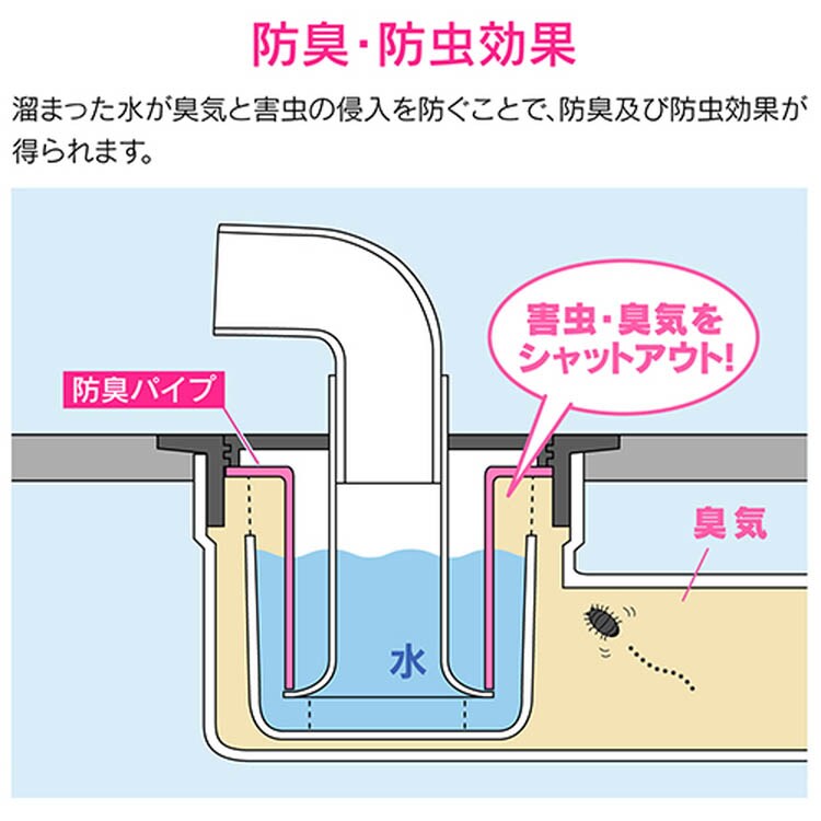 ●防臭ワンとセットで使用することで排水口からの悪臭や害虫を防止します。