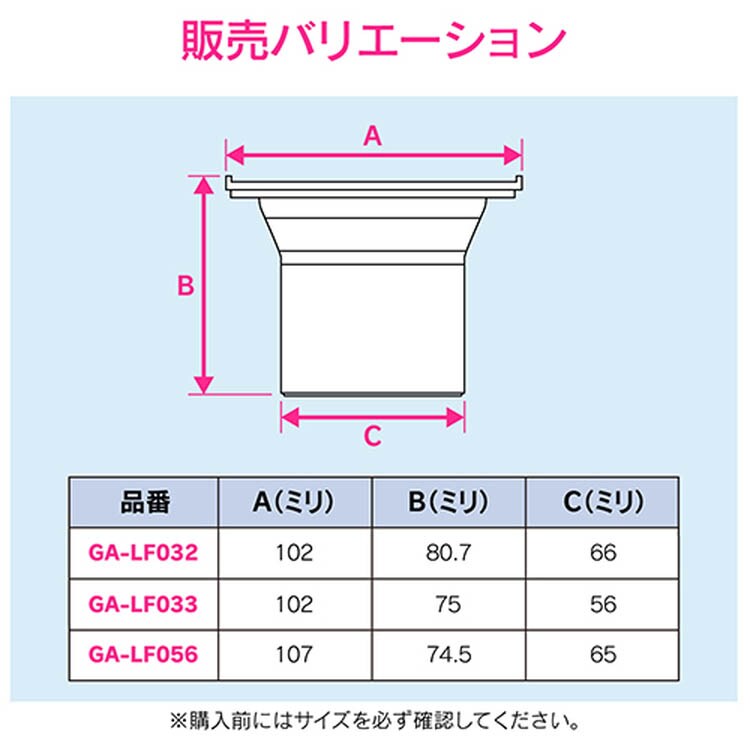 ・排水口部材のサイズはご使用のメーカーによって異なるため、ご使用中の部材のサイズをご確認の上お買い求めください。