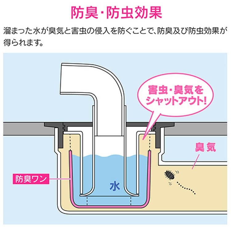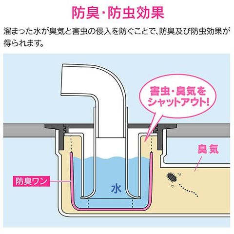 ●防臭パイプとセットで使用することで排水口からの悪臭や害虫を防止します。