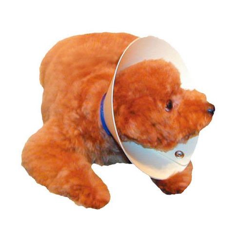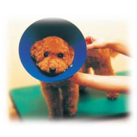 ●ワンちゃんの首をやさしく包んで、自分のからだを舐めたり顔をこすったりしないように動きをガードします。