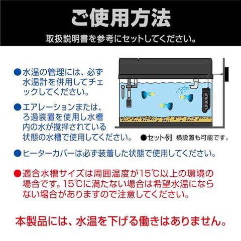 ・本製品は屋内観賞魚飼育専用です。他の目的には使用しないでください。