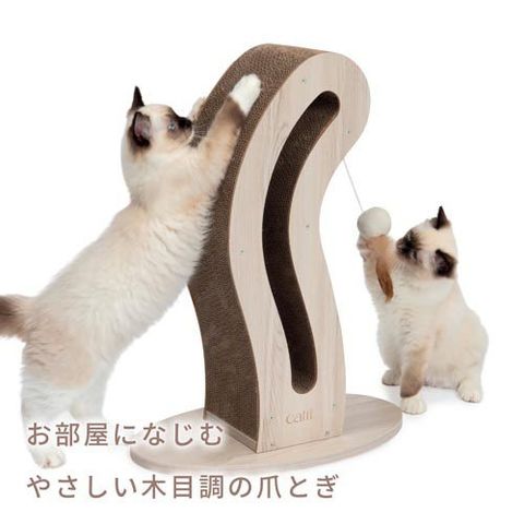 ●羽根つきのボールのおもちゃと安定感のある台座がついており、愛猫が爪とぎするのに最適で、家具を守ってくれます。