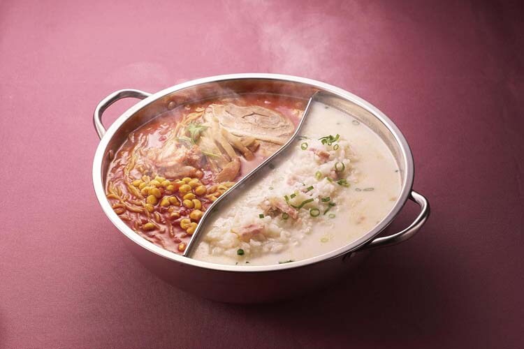 ●出汁やスープや食材など、2種類の鍋料理を味わえる。